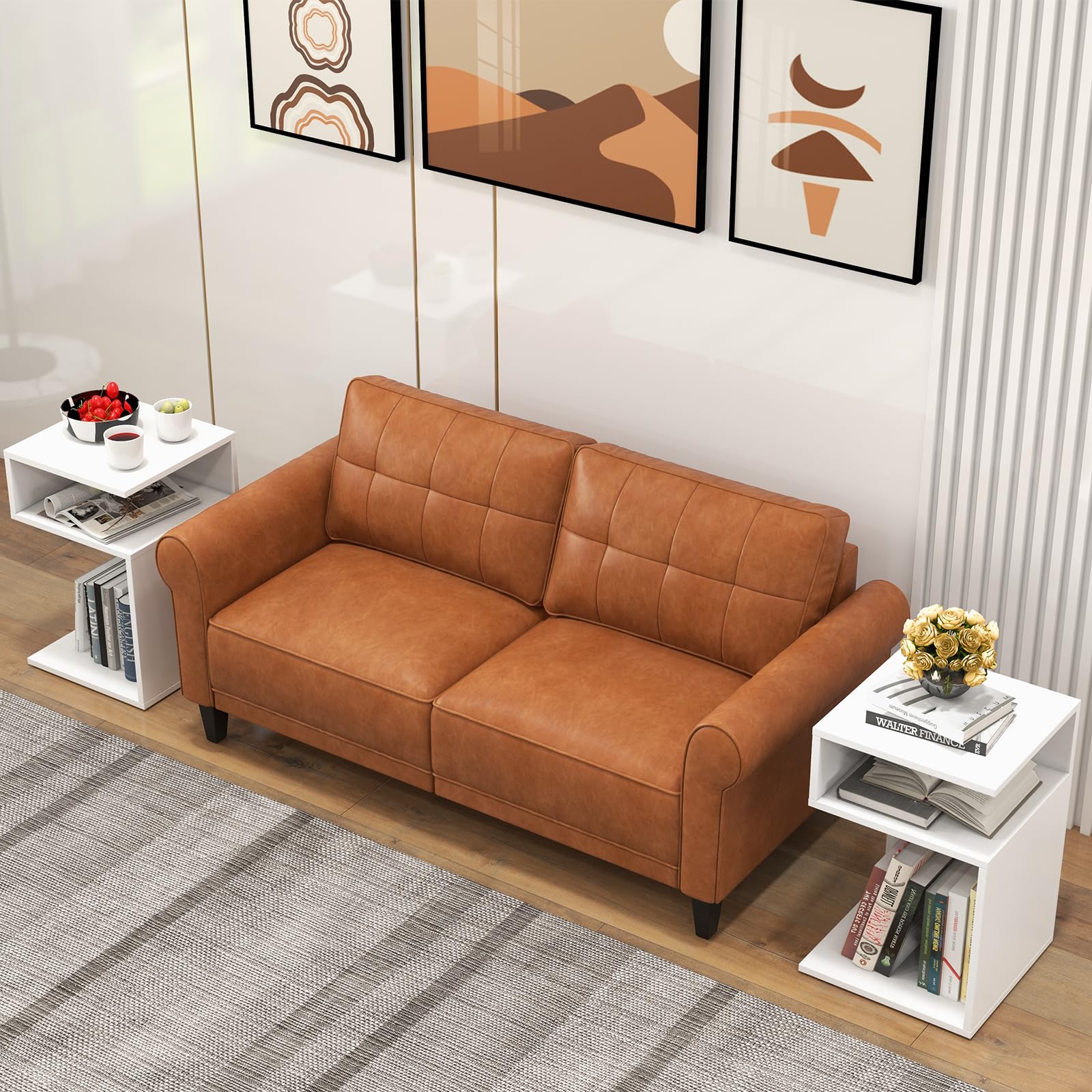 - [Ample Storage Space]: This modern end table has 2 open compartments of middle storage compartment and bottom open shelf, and a spacious countertop to hold your books, cups, ornaments, or flower vase. In addition, the open design helps keep your items at hand, providing great convenience.