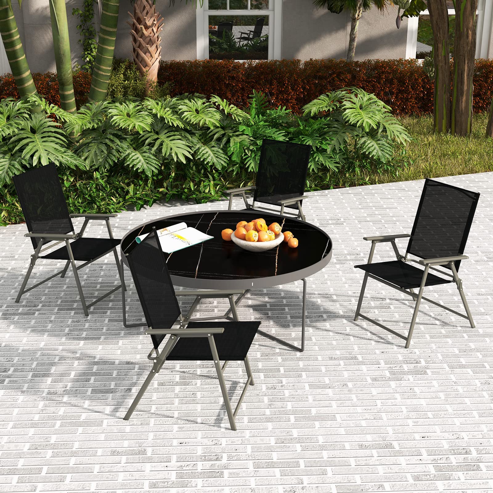- Safe & Stable Construction: Made with a rustproof metal frame and weather-resistant fabric, these patio chairs are sturdy and durable enough to withstand outdoor weather, while providing a strong load capacity of up to 330 lbs per chair. Moreover, the security lock design ensures better stability and non-slip foot pads protect your floor from scratches.