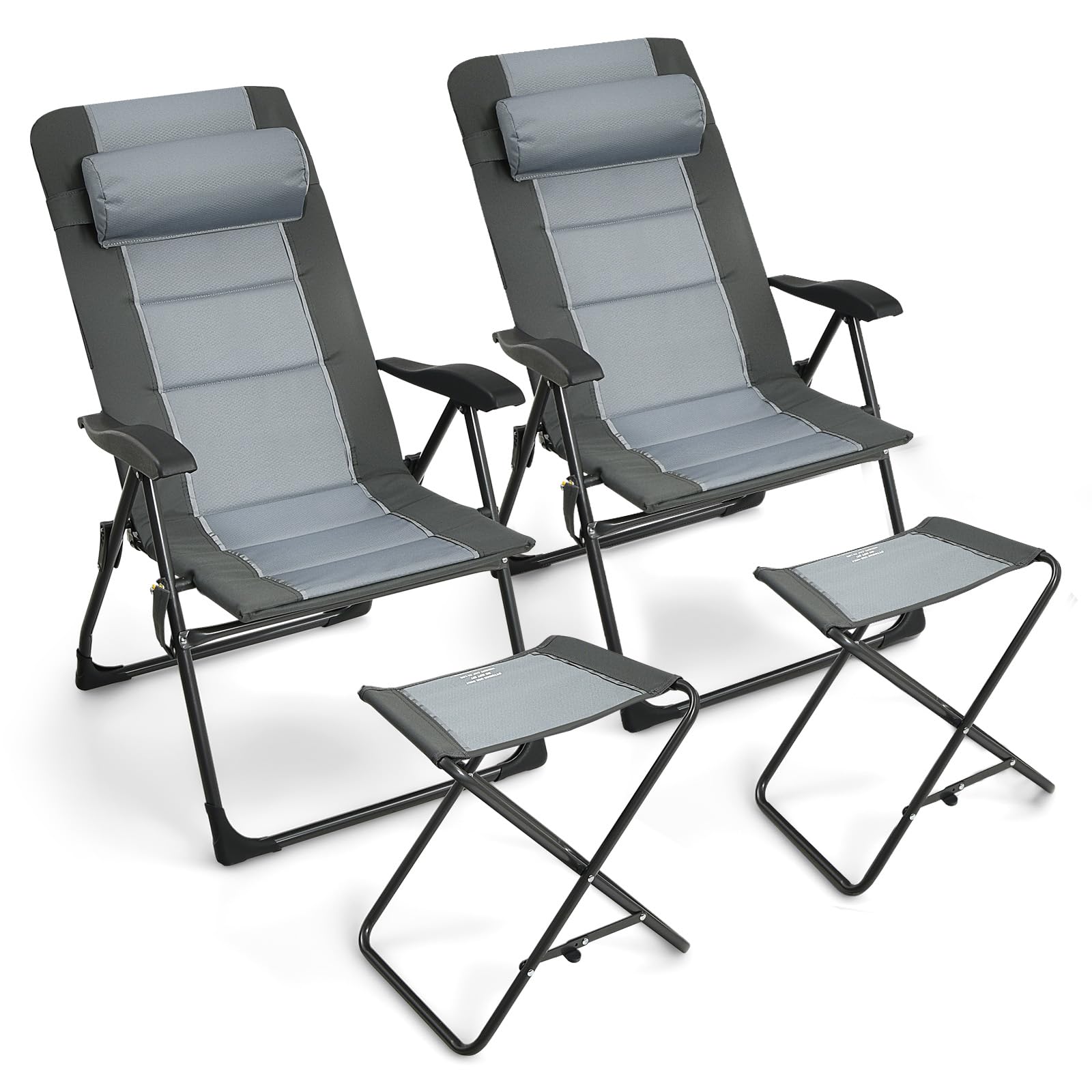 - Versatile Usage for Endless Enjoyment: Our portable lounge chairs with footrests are not limited to garden, deck, poolside or backyard relaxation. They are also perfect for picnics, camping, RV travel and any other outdoor activities. The 4-piece folding chair set will be the perfect addition to any indoor or outdoor setting.