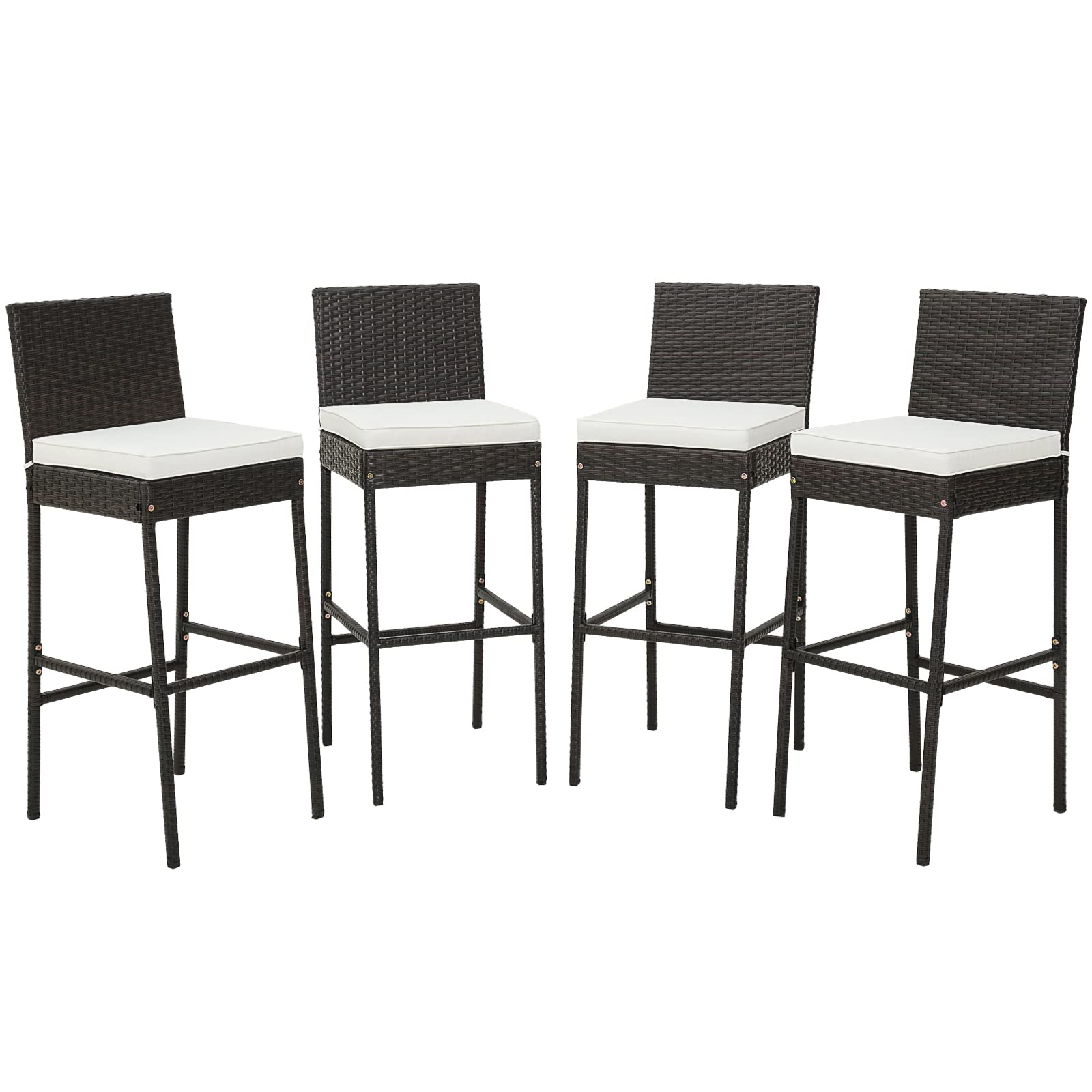 With appropriate seat height, each bar chair is perfect for most bar tables. And you can relax with more coziness with the convenient footrest and high backrest. Plus, the seat cushions make the seat much softer to sit on. And the covers are easy to maintain thanks to the zipper design. All the bar chairs are sturdy and durable with high-grade metal and a hand-woven mix of brown PE rattan. Come and enjoy your outdoor leisure time with this wicker bar chair set!