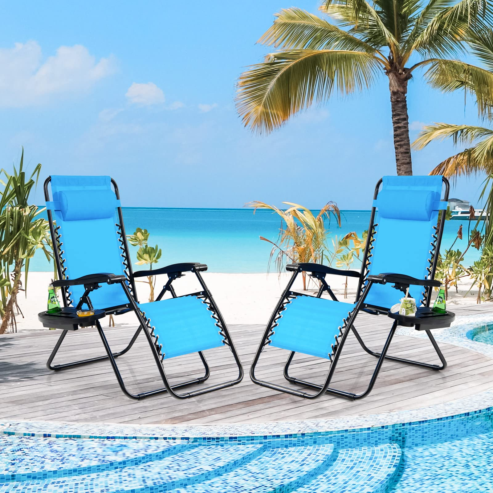 The design highlight of this folding lounge chair is adopting a zero gravity design. It really makes you feel relaxed and when it reclines back, it really does feel like zero gravity. Our outdoor recliner can be adjusted from a vertical position to the maximum angle of 160 degrees and you can sit on the patio chair, close your eyes, then taste the peace and cozy of nature! Adopting the exquisite breathable fabric and come with a sturdy steel frame, this folding reclining lounge chair is durable for a long life span, lightweight for easy carry, and convenient storage. Meanwhile, a side cup holder tray to place beverages, magazines, phones,s or other small items for convenient accessibility. A great helper to suit different activity scenarios like a deck, porch, poolside, garden, and yard for relaxation