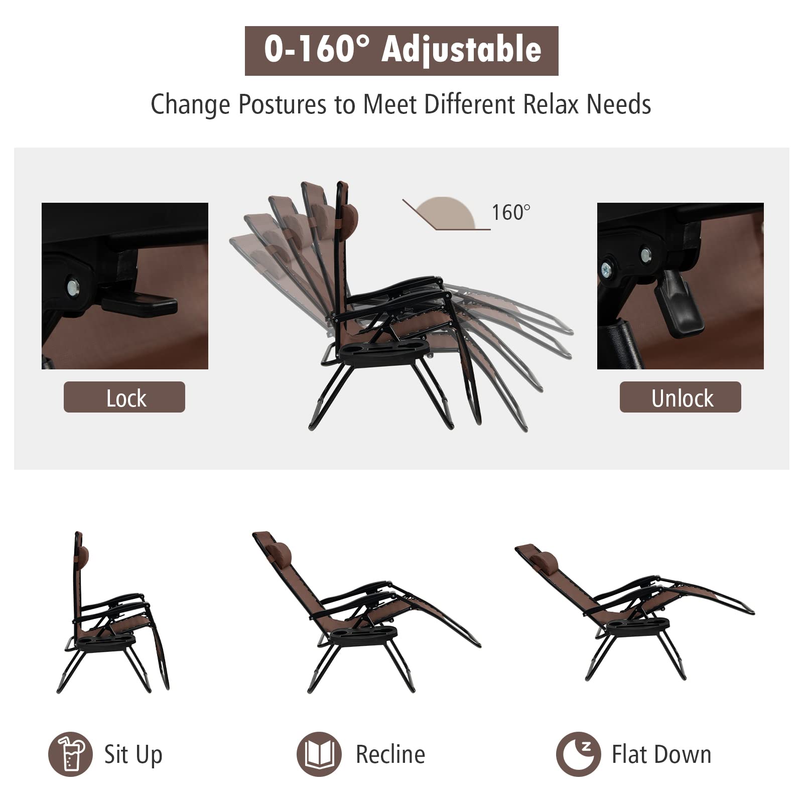 Tangkula Zero Gravity Chair, Folding Patio Lounge Chair Adjustable Outdoor Recliner