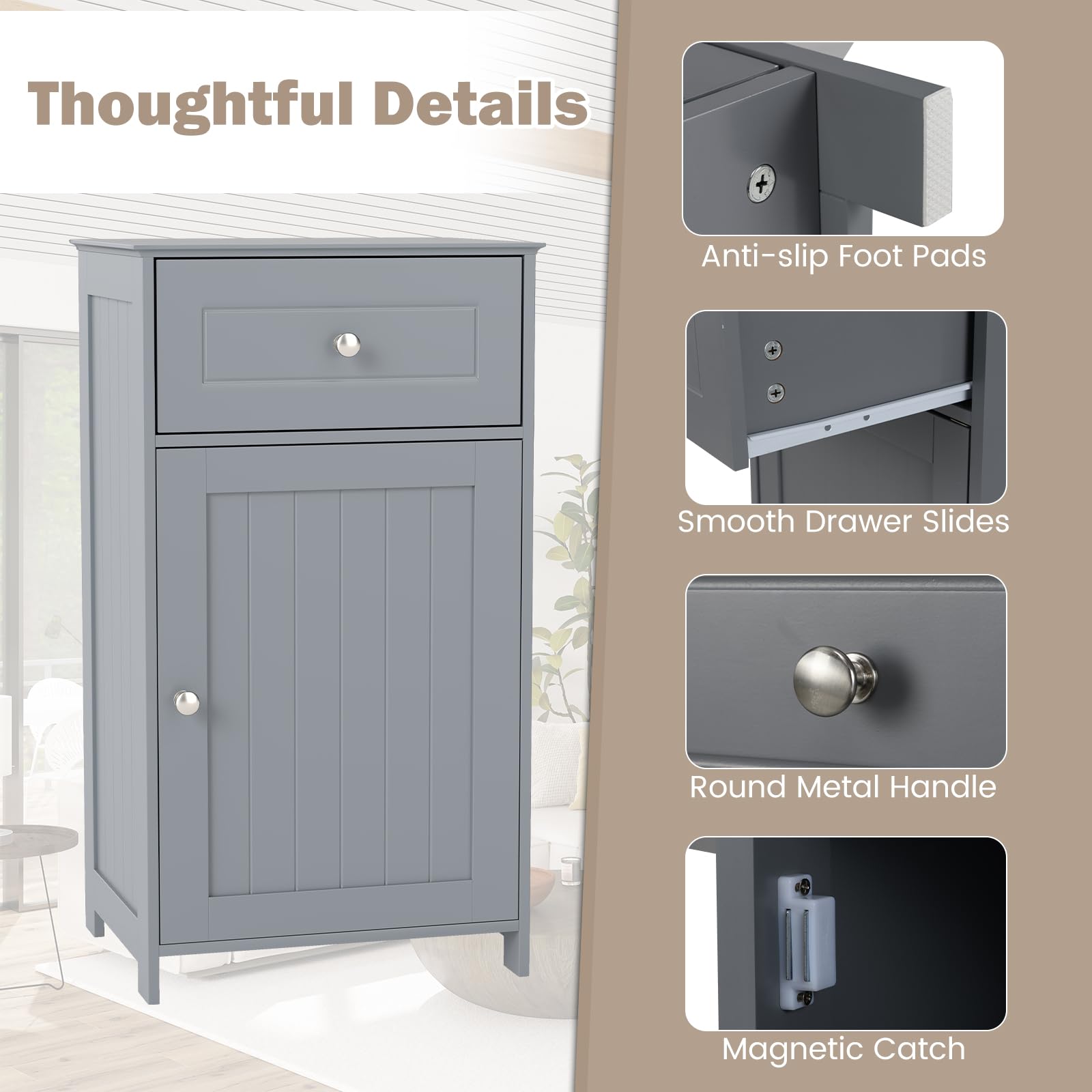 Whether you are struggling with the chaos in the bathroom or worried about the mess in your bed room, this storage cabinet can meet the various storage requirements and provide you with a tidier room. Consists of an one door cabinet and a large drawer, this floor cabinet provides a large storage place for your bathroom. Additionally the adjustable levels for the bottom closet can be adjusted to fit paper, toiletries, cosmetics or other items of different size. What’s more, it offers user-friendly details, such as anti-tipping device and stable foot design which ensure your safety. Moreover the modern simple designed appearance will fit well with your interior decor.