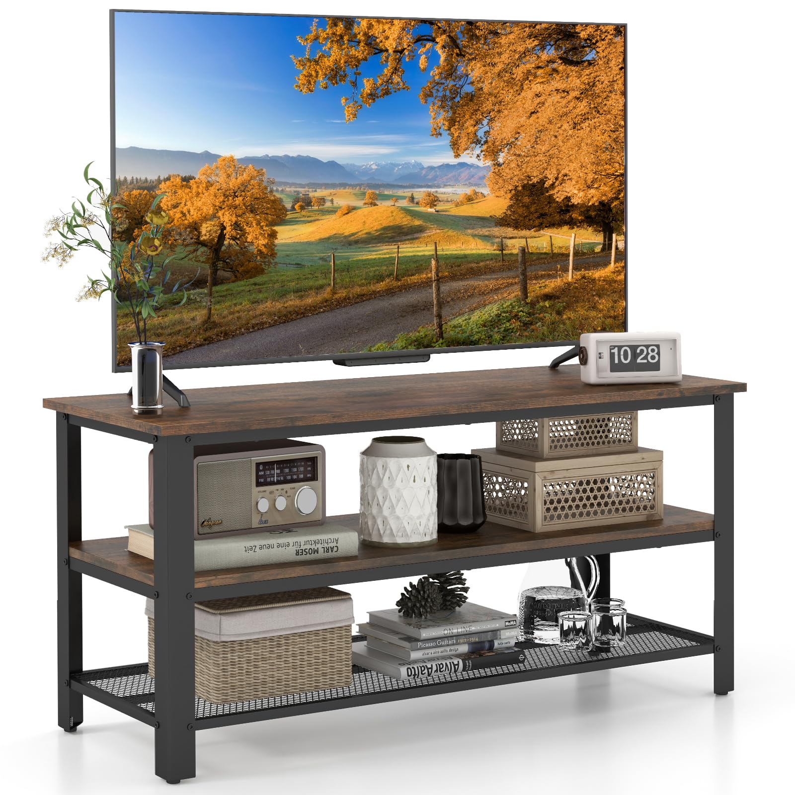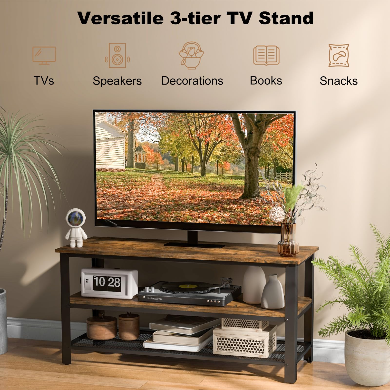 - Elegant & Functional Addition: The realistic wood grain of the media entertainment center exudes an industrial charm, making it a perfect addition in your bedroom, gaming room or bedroom. Additionally, the versatile 3-tier TV stand can double as an entryway console table.