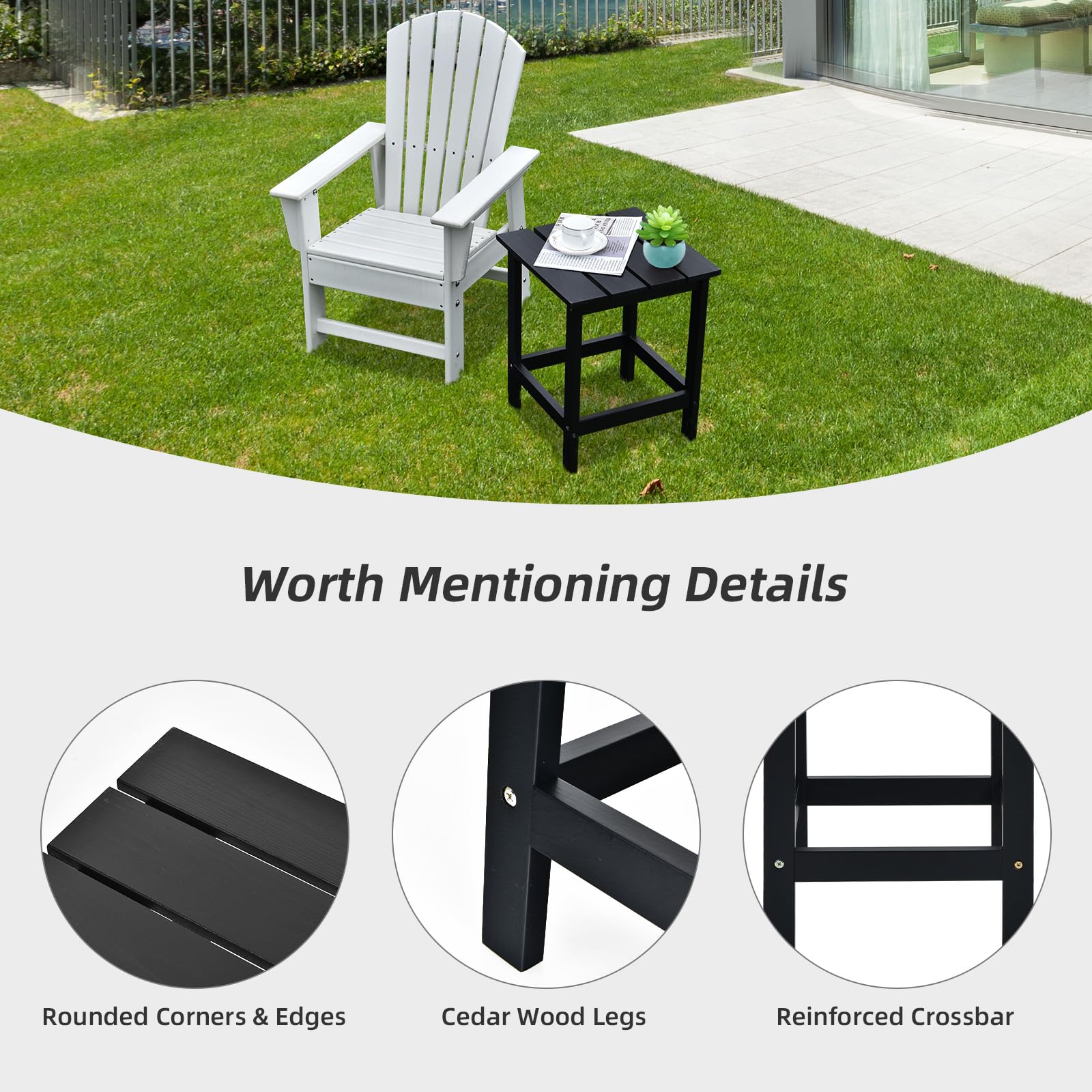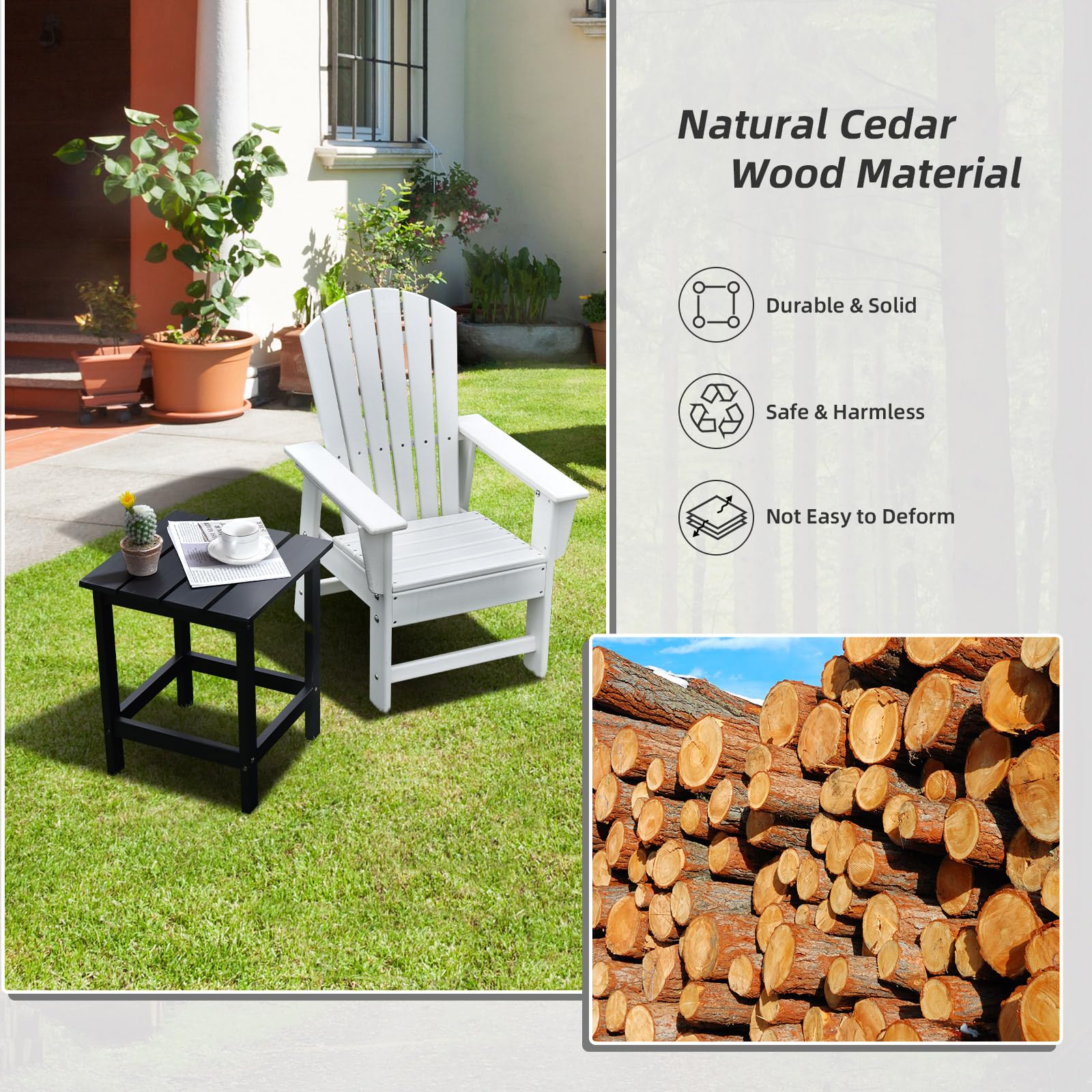 - ?【High Quality Fir】This outdoor side table is made of solid fir, which has excellent performance in terms of durability and is not easy to crack or deform. The painted surface is smooth, safe and reliable.