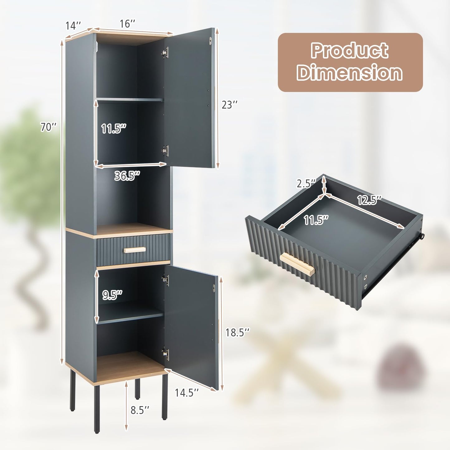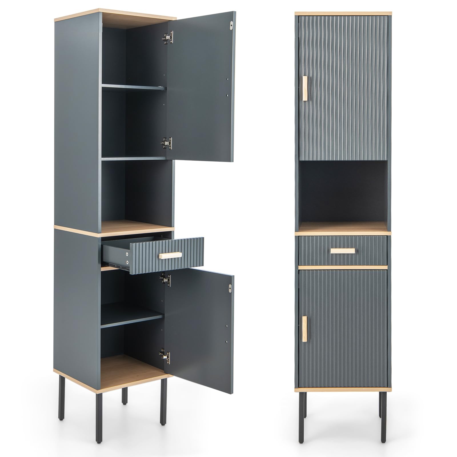 - Customized Storage Solution: This tall slim storage cabinet includes 2 cabinets with doors, 1 open compartment, and 1 drawer, offering plentiful storage space for various items. By the way, the 3-position adjustable shelves (the increment is 2.5" behind the doors adapt to things of different heights.