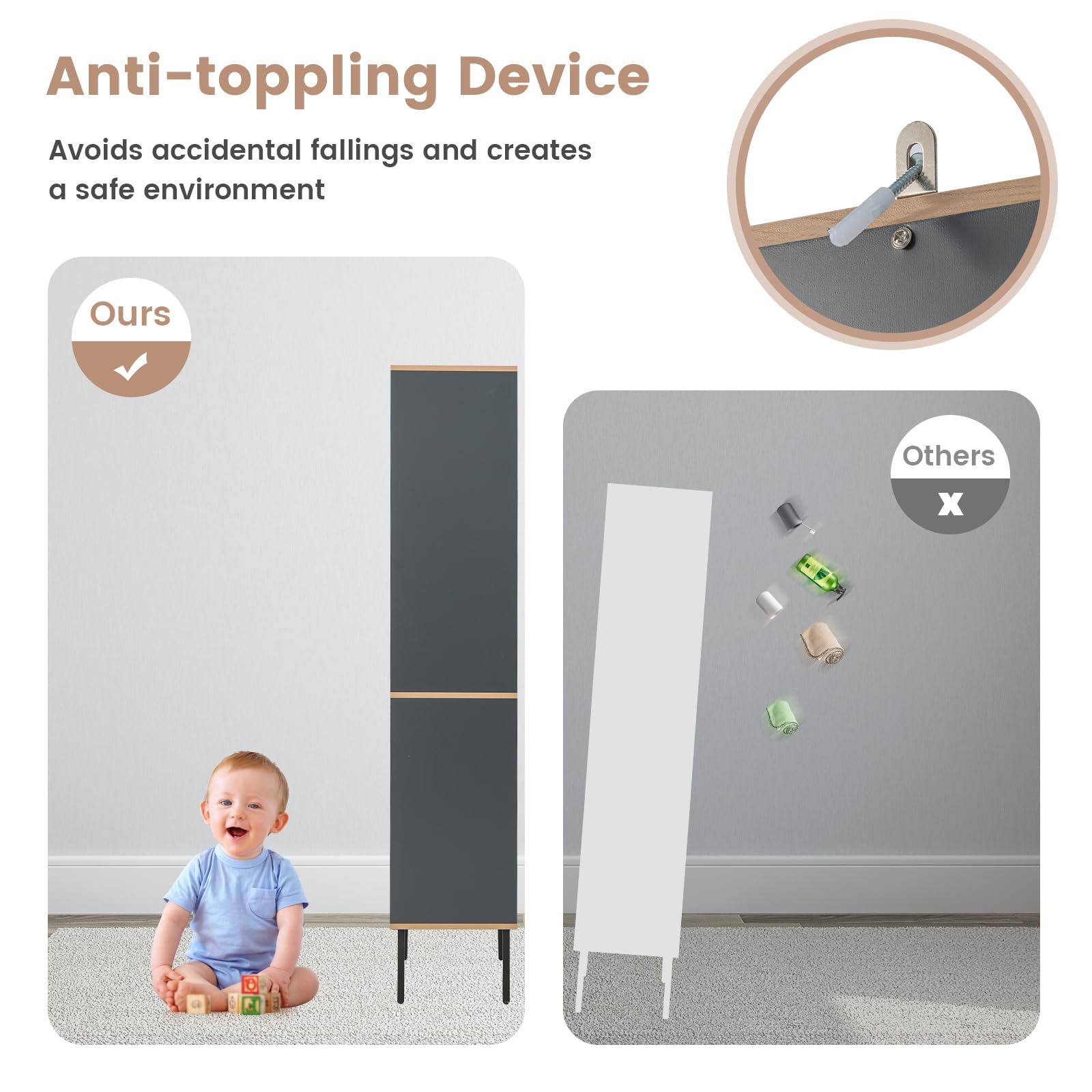 - Safe & Space Saving Design: The equipped anti-toppling device attaches this freestanding bathroom cabinet to the wall tightly, which avoids accidental fallings and creates a safe environment. Additionally, the tall and slim design enables the linen cabinet to fit any narrow space and maximize storage.