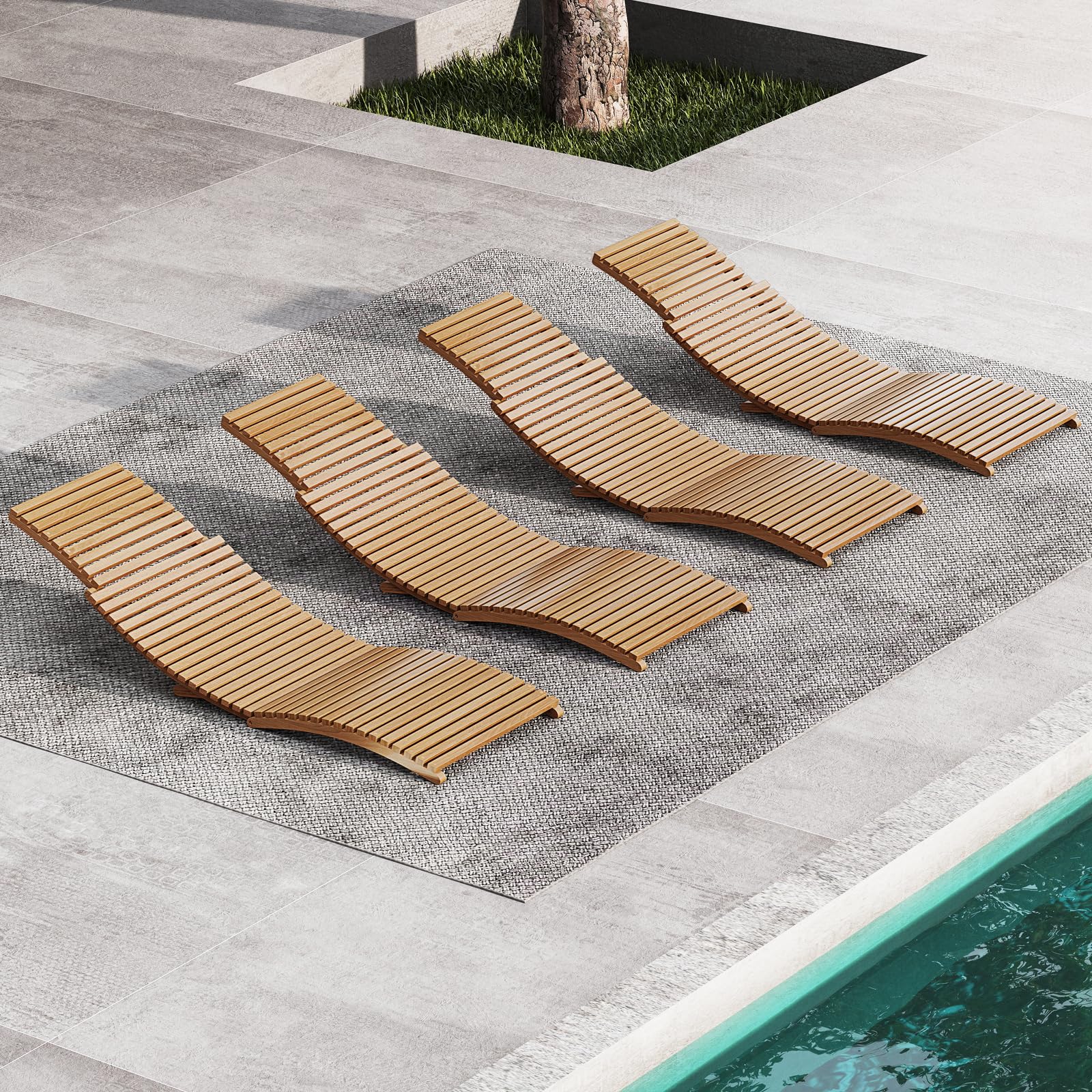 Enjoy outdoor relaxation with this exquisite teak wood patio chaise lounge, designed for durability and comfort.