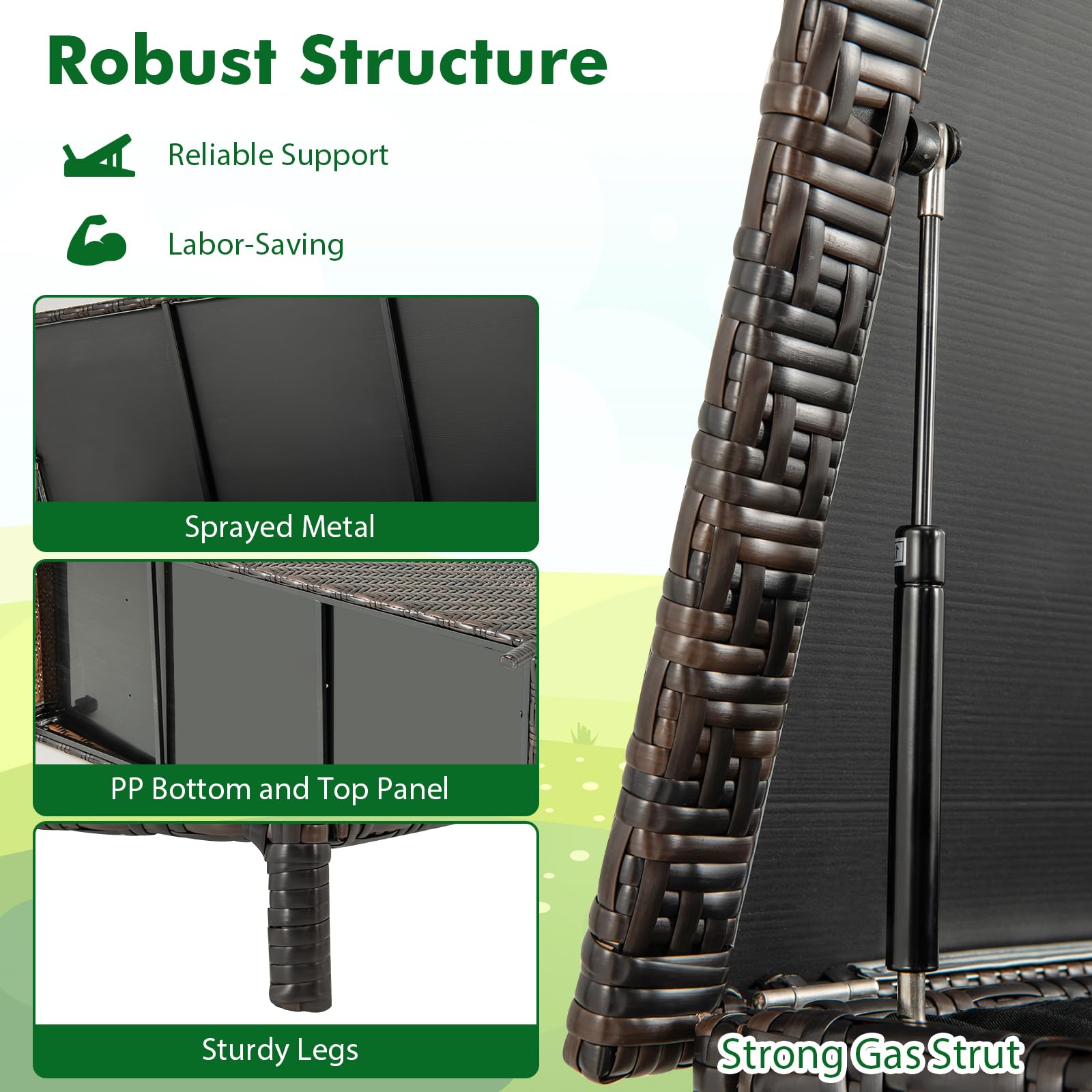 - Gas Strut & Metal Frame: The wicker storage container comes with a powerful gas strut, paired with a sturdy metal structure, providing easy, secure lid opening and closing. At the same time, it also prevents accidental hand injuries.