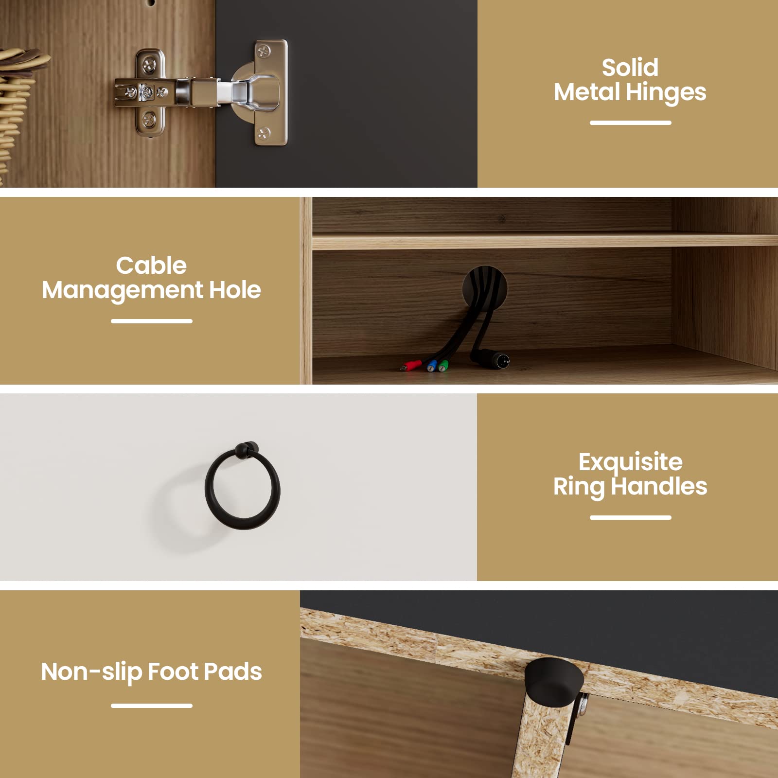- [Wonderful Addition for Home]: The perfect combination of natural wood grain and multiple colors endows the TV stand with a simple yet stylish appearance, which is a charming complement to your home. In addition, to be used as a TV stand, it can be served as a console table or storage cabinet whether placed in the living room or bedroom.