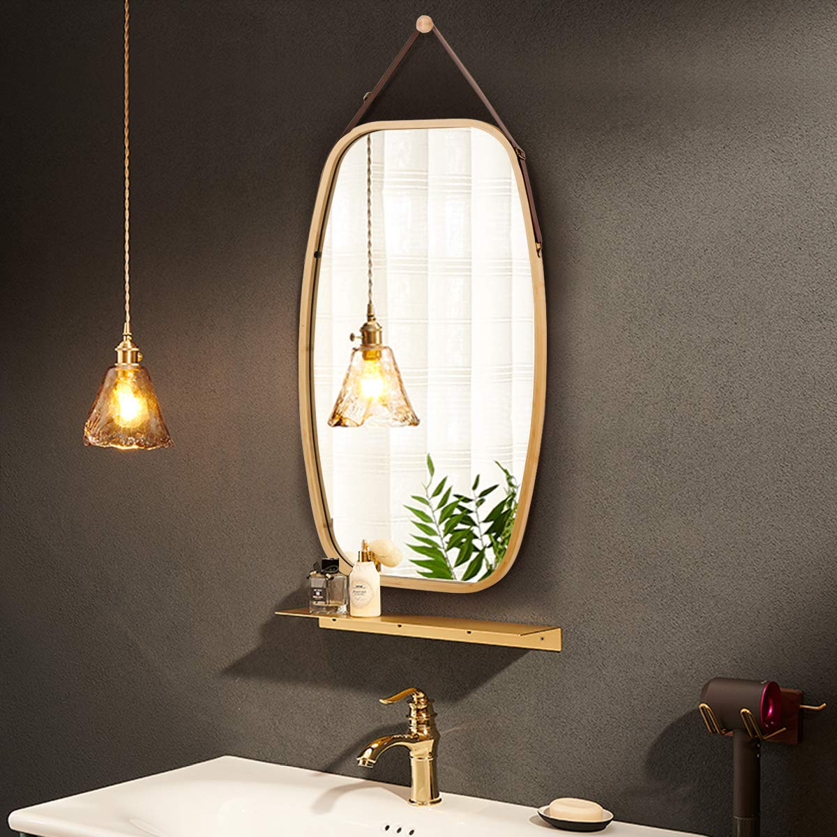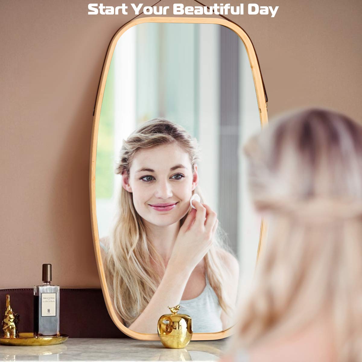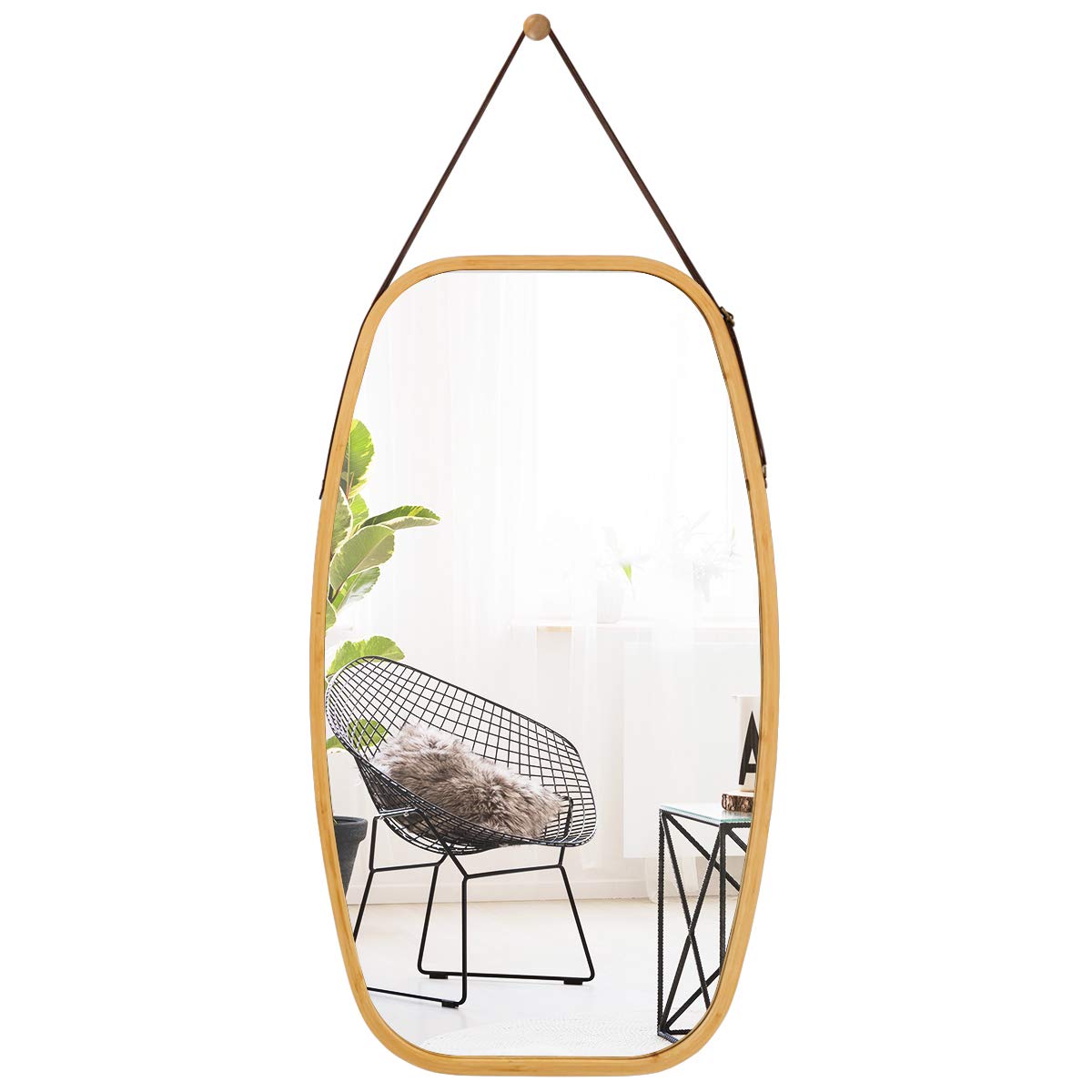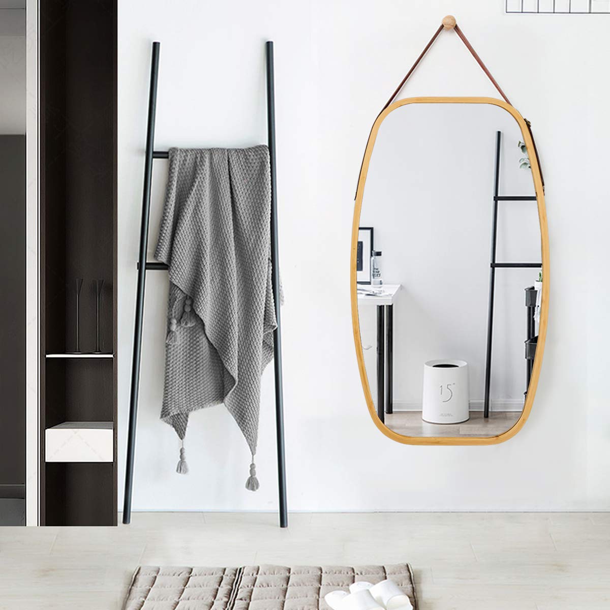 Made of a superior bamboo frame and leather strap, the mirror with clear reflection is sturdy and durable for long-time use. Besides, the strong leather strap is adjustable to fit the mirror at a suitable level for anyone. And the full-length mirror provides you with a clear and real mirror image to brighten your room and expand the space visually. What’s more, the mirror comes with a wall mount hook, which can be easily set up for convenience hanging. And the elegant mirror with a round corner is a perfect decoration for your bedroom, living room, bathroom, or anywhere you like. Come and got it, decorate your own sweet home.