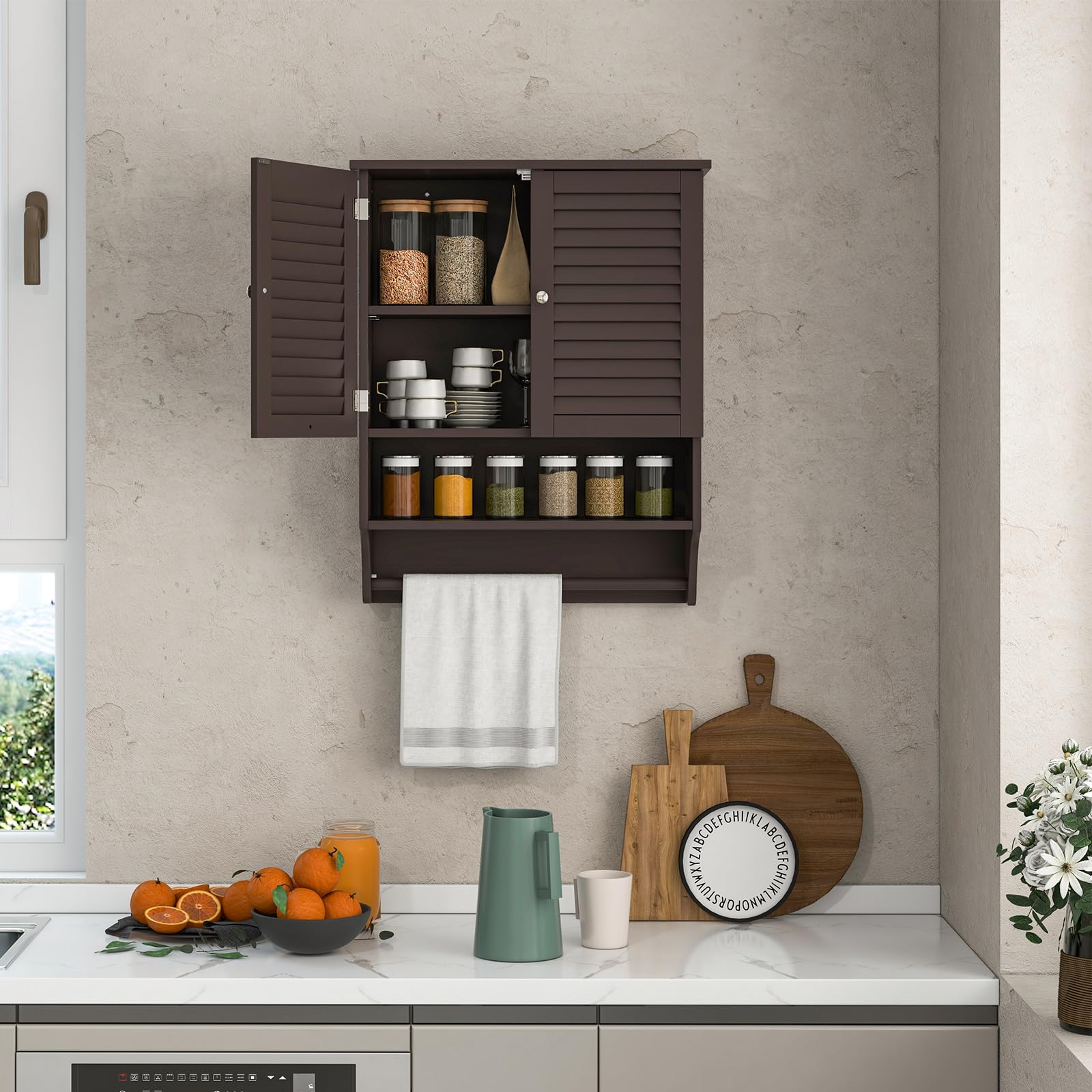 • [Multiple Storage Options]: The wall-mounted bathroom cabinet features a large cabinet with 2-tier shelf and an open storage compartment, which can meet your needs for storing various bathroom supplies. And the convenient towel bar offers a perfect perch for your towels.
