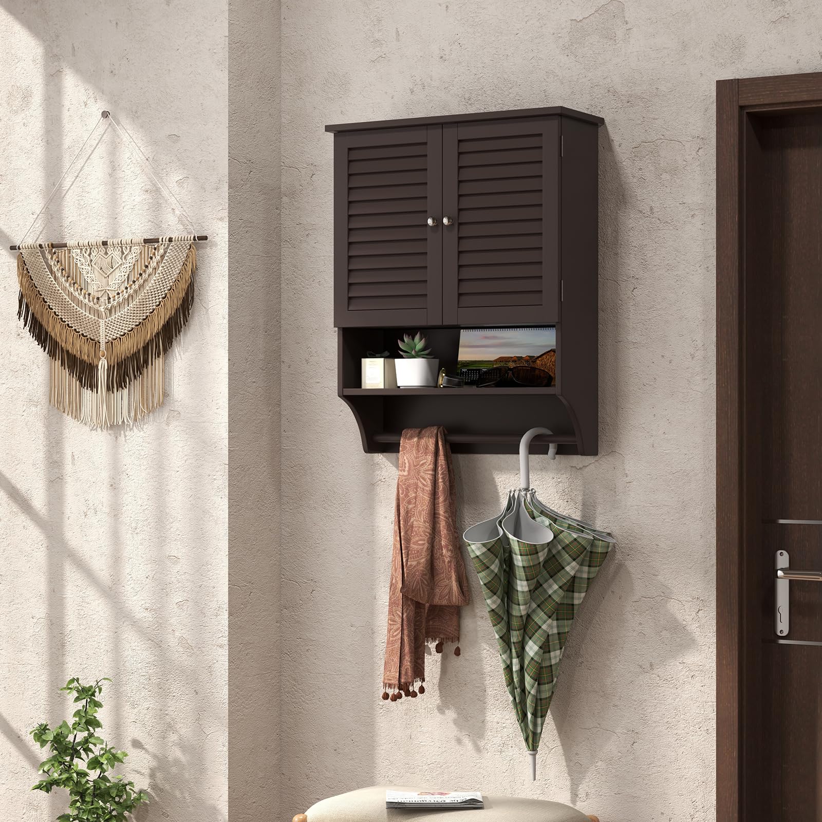 Tangkula Wall Mounted Bathroom Cabinet with Open Shelf & Bar