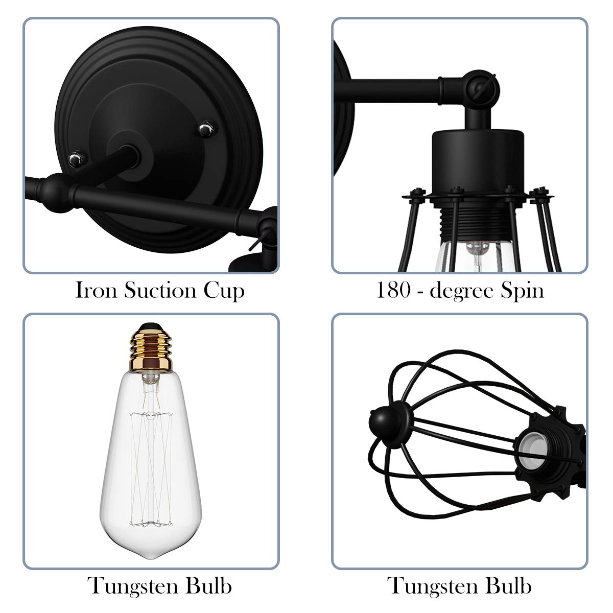- Vintage & Industrial Style: This antique-style mini wire cage 2-light wall lamp is the perfect combination of industry and aesthetics. A restorative and balanced feel is repurposed in this collection. The Oval Edison light bulb adds warmth and style to the cold torpid wire cage. Decorate your house with just the right amount of light that will not hurt the eyes and brings us a quiet and warm atmosphere.