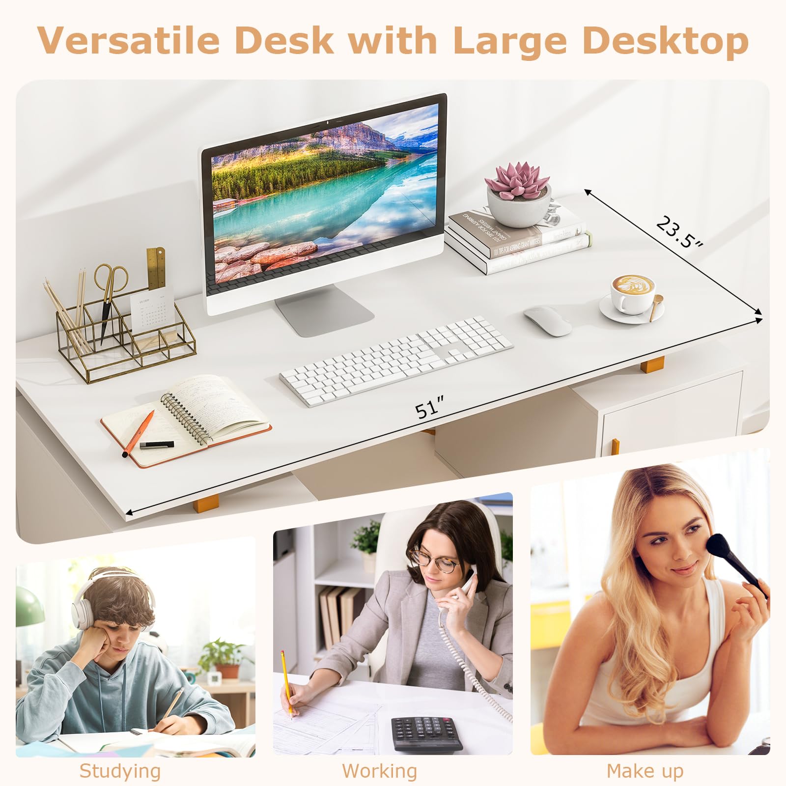Tangkula White Desk with Storage Drawers & Cabinet, Home Office Computer Workstation with Floating Desktop
