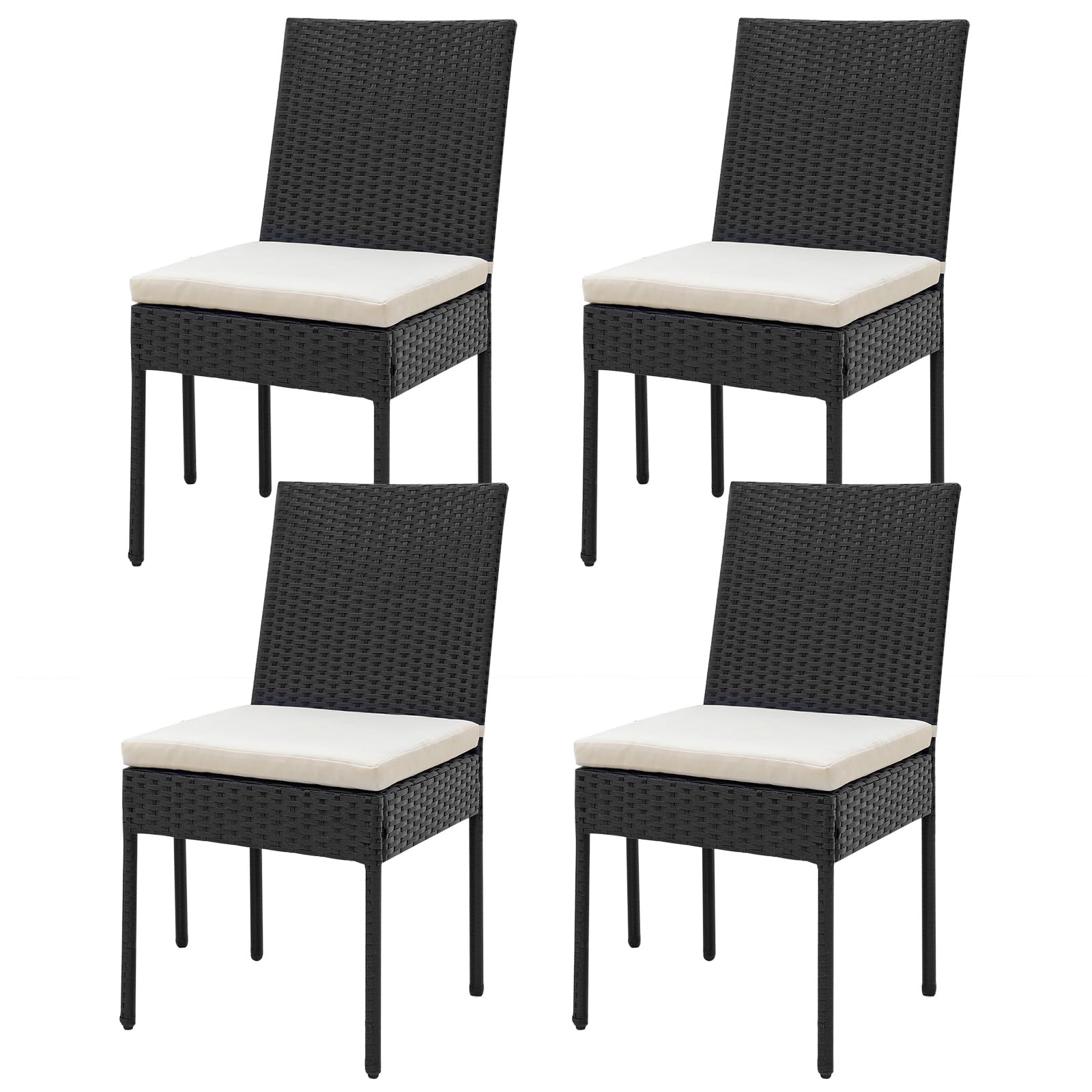 Tangkula Wicker Patio Dining Chairs, Outdoor Armless Wicker Chairs with Cushions, Backrest, Sturdy Metal Frame