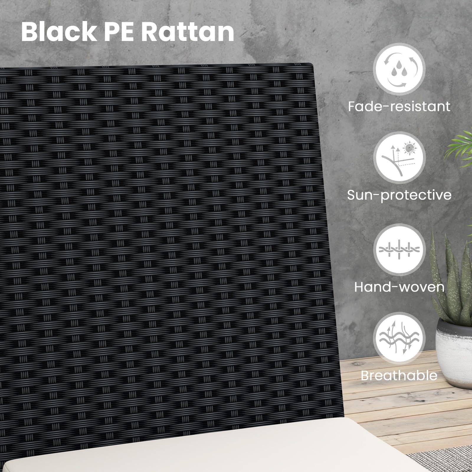 • Premium PE Rattan: Crafted with black PE wicker, these patio dining chairs are not only elegant for timeless addition but also fade-resistant and sun-protective for outdoor durability.