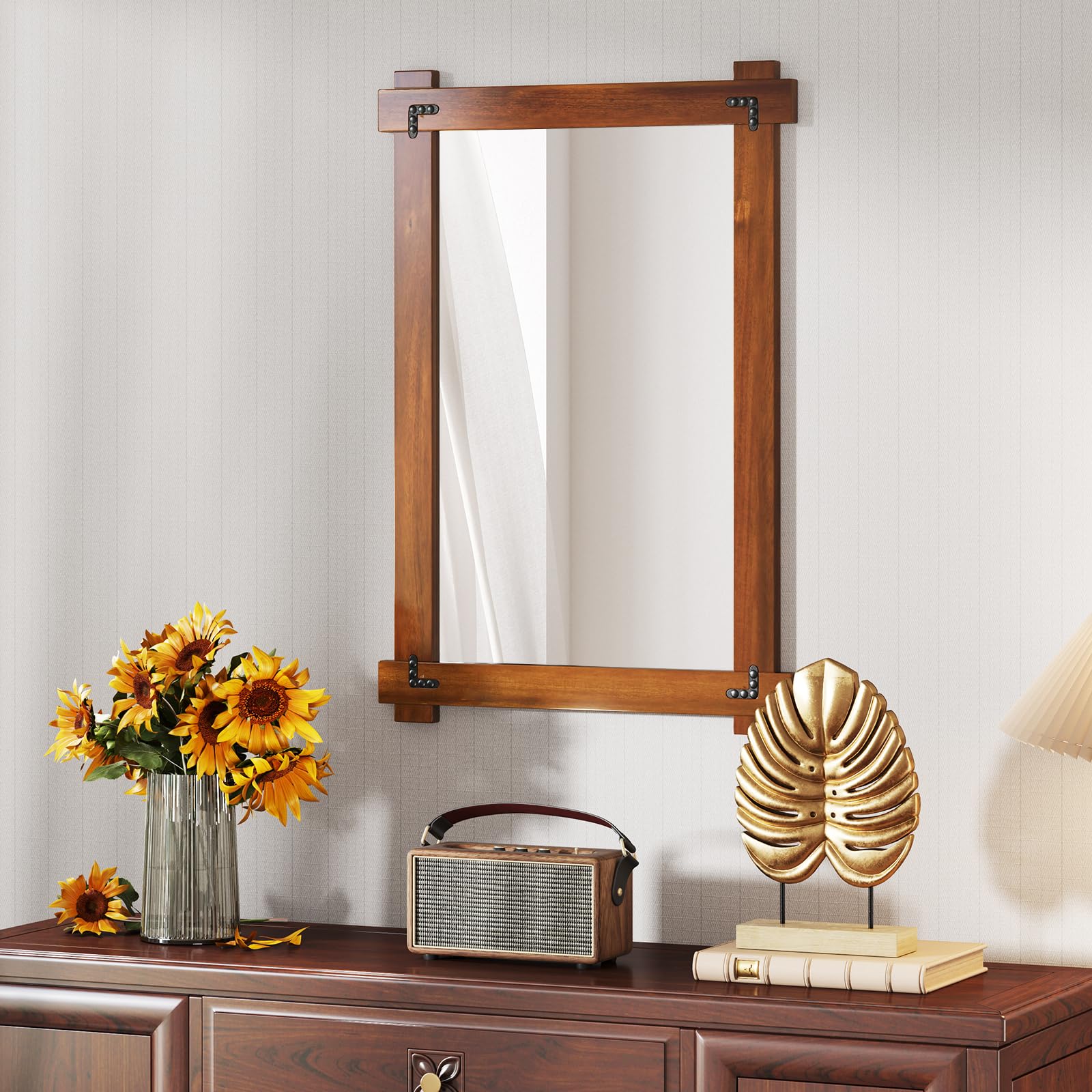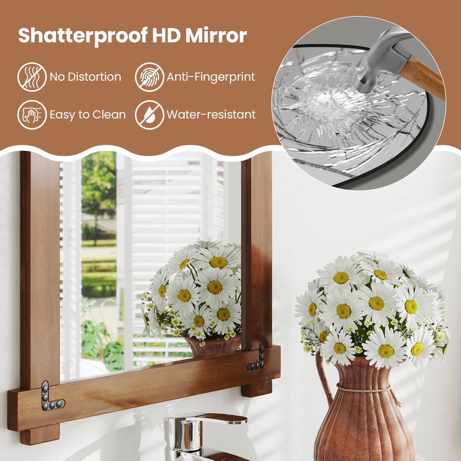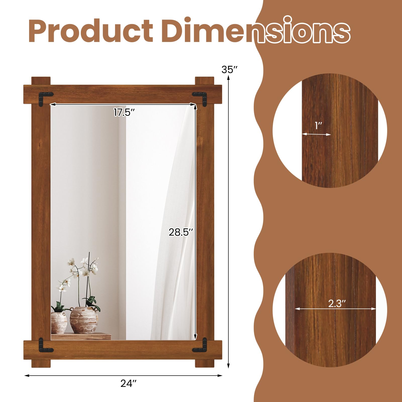 Featuring a sturdy acacia wood frame, the rectangular wall mirror blends rustic charm with modern functionality, while its vintage rivet accents and natural grains add a cozy, farmhouse feel to any room. The shatterproof, anti-fingerprint mirror stays crystal clear with just a quick wipe, making it as practical as it is beautiful. Hang it vertically or horizontally to match your interior style, and make it an ideal fit for your entryway, living room, or bedroom. Upgrade your home with this centerpiece of character and warmth today!
