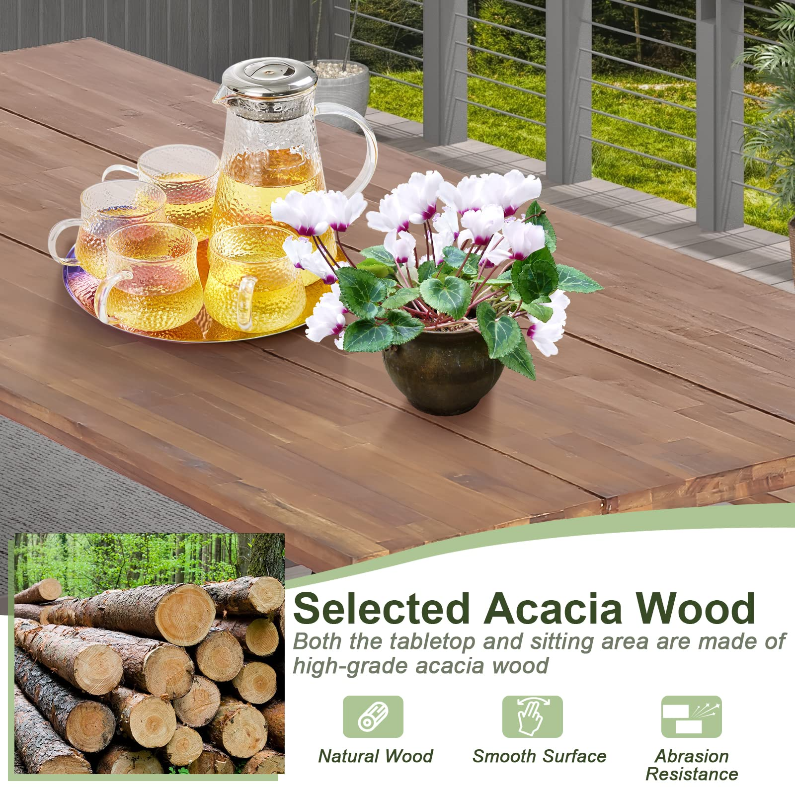 Tangkula Wood Picnic Table, Outdoor Acacia Wood Picnic Table Bench Set with 2 Built-in Benches