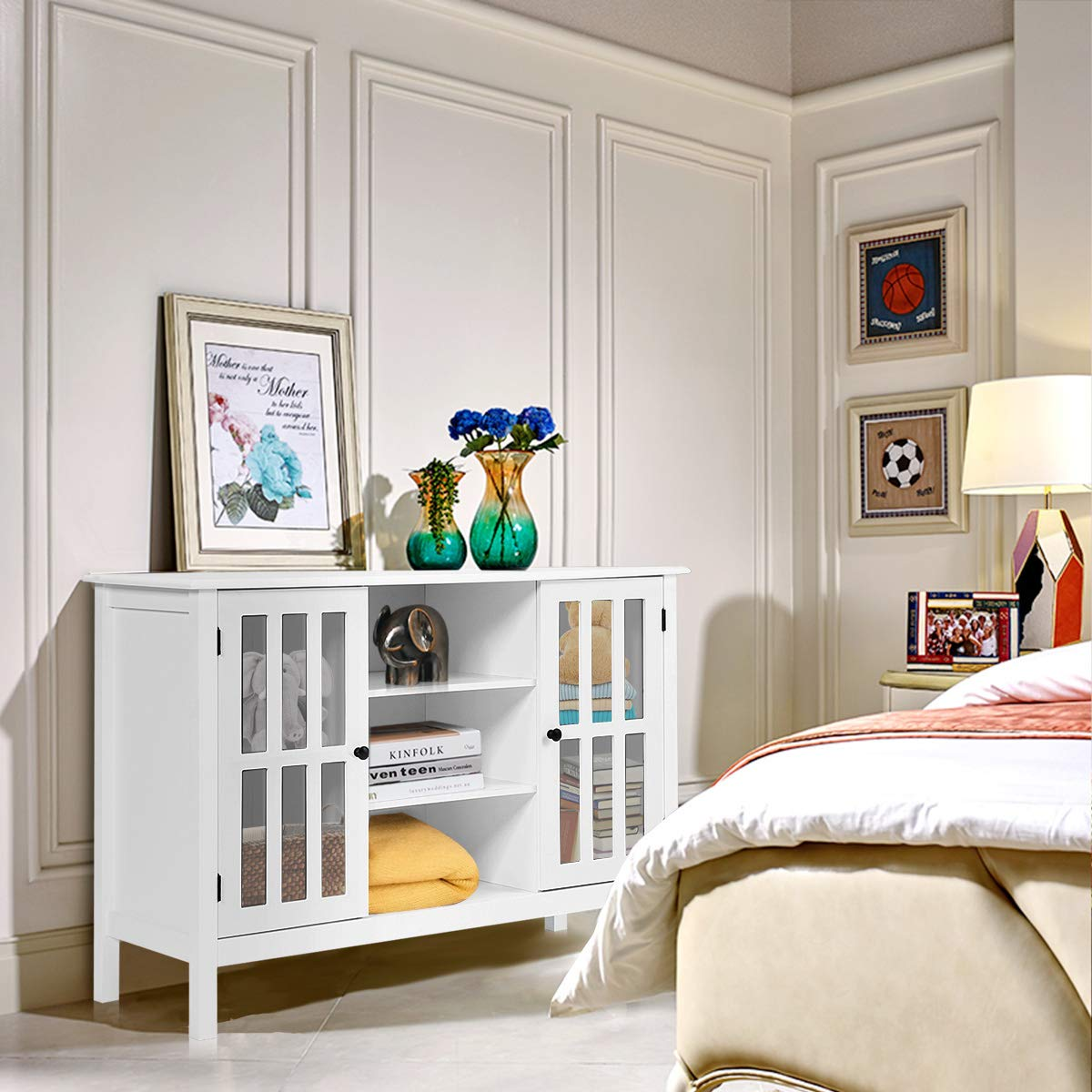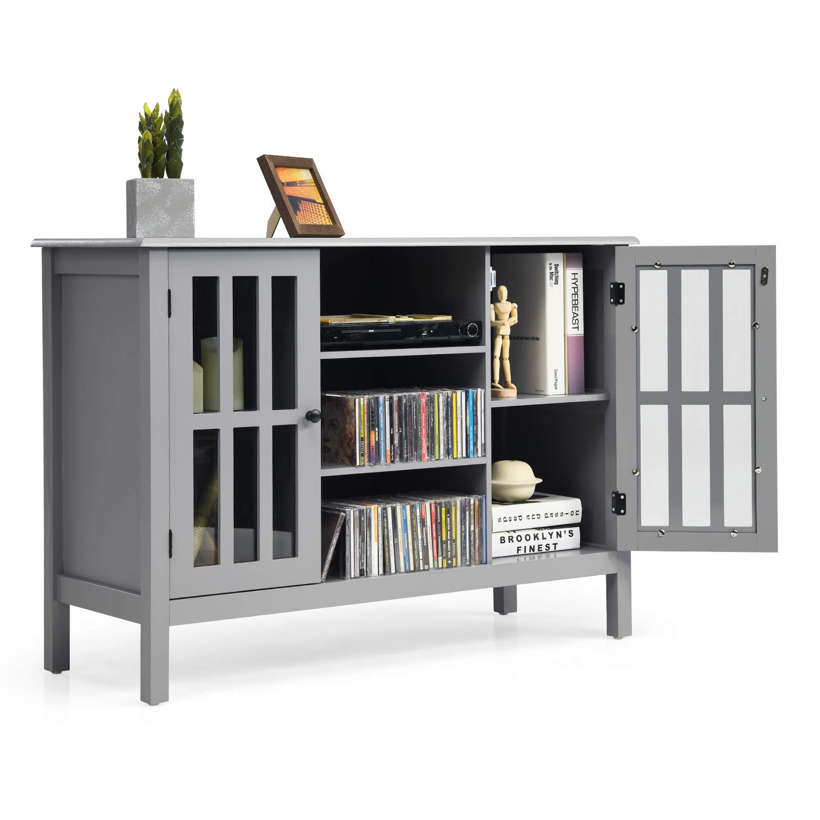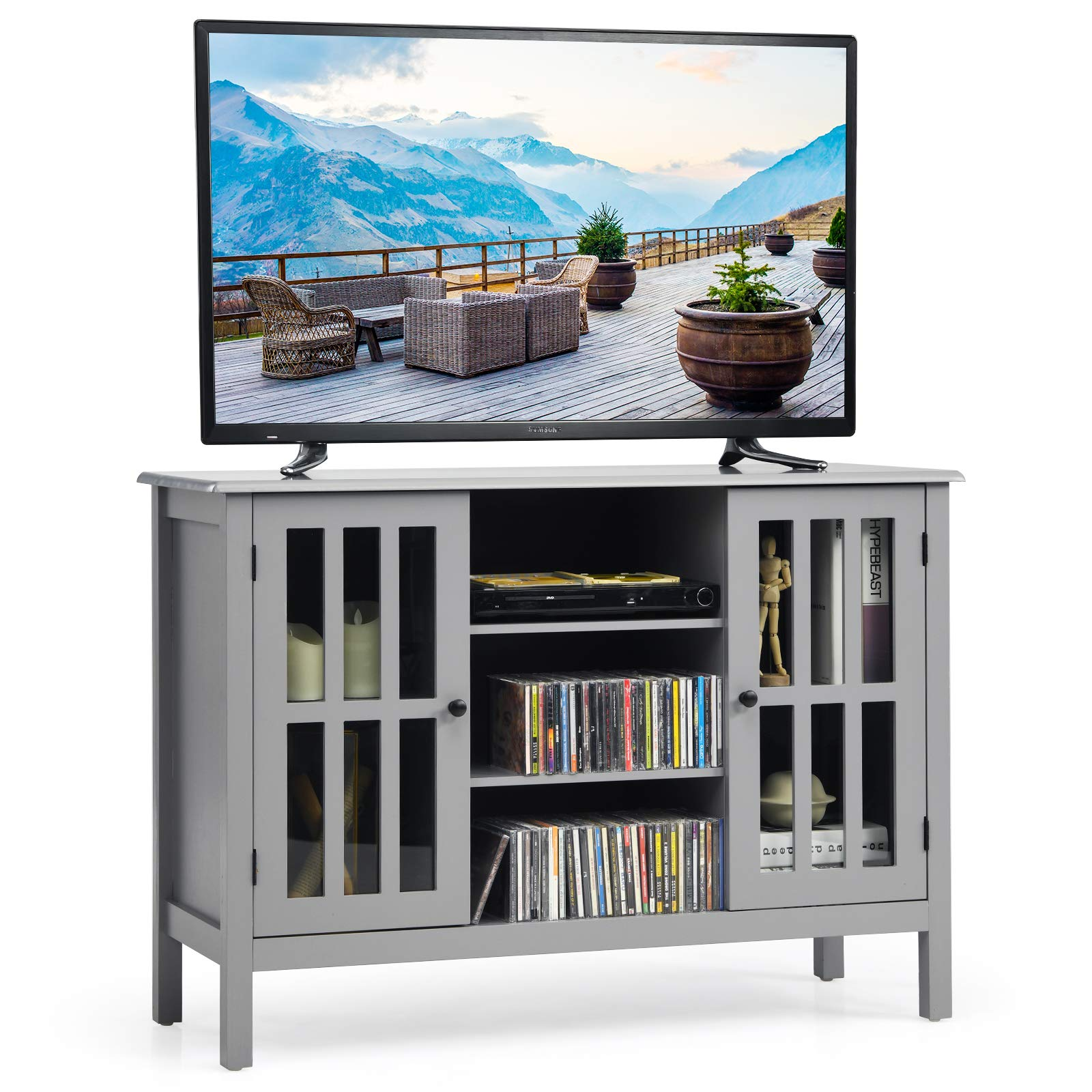 • Large Storage Space: The Tangkula TV Stand is a perfect storage solution for homes. It contains 2 cupboards and 3 display shelves - all with big capacity to satisfy your demand to place many things. Its design maximizes the space of your room.