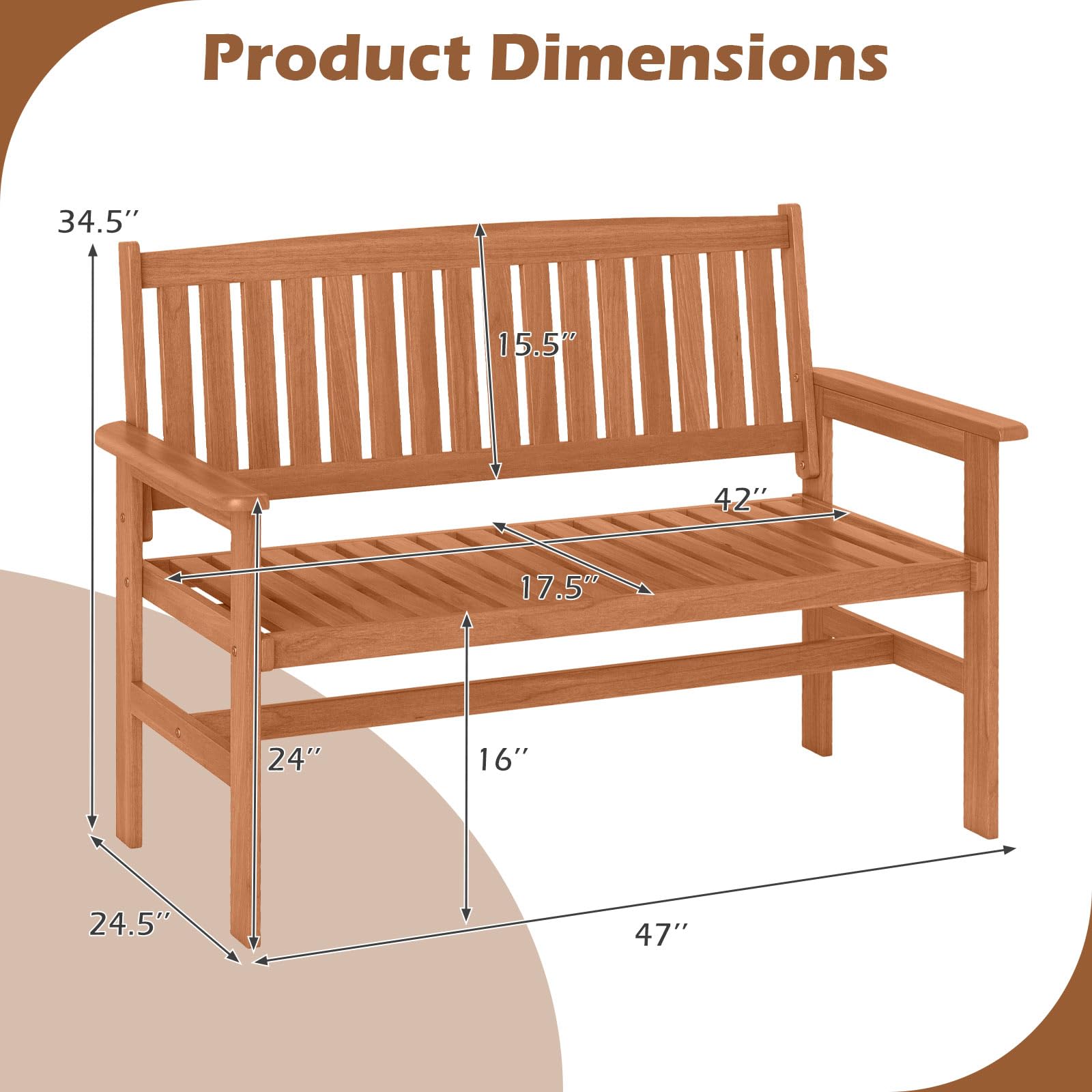 Tangkula Wooden Garden Bench 2-Person Patio Loveseat with Slatted Backrest and Comfortable Armrests